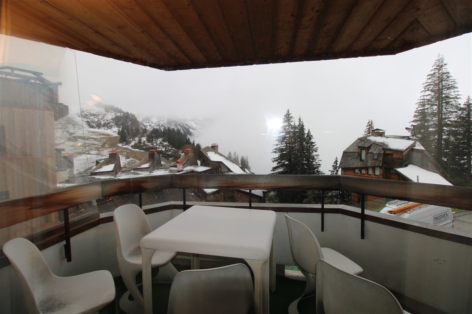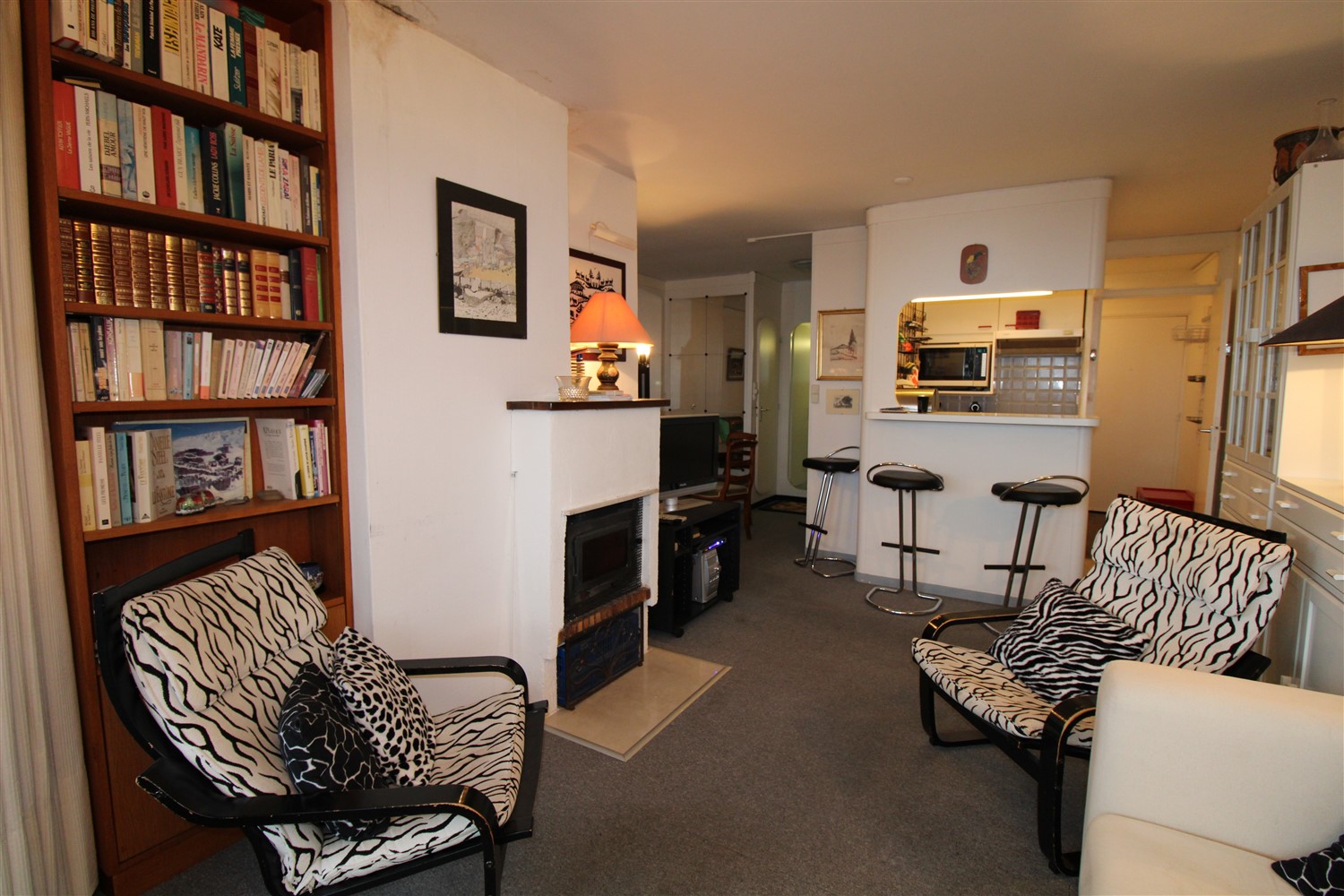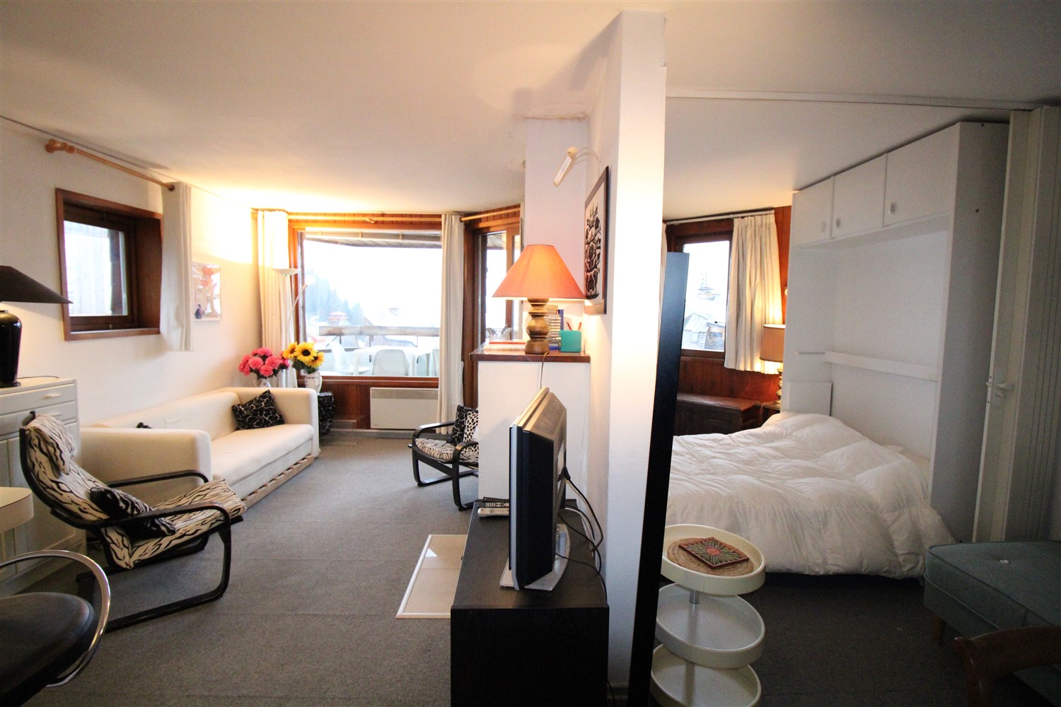 - Living/dining room with sofa bed with fireplace opening onto the balcony/terrace with fully equipped kitchenette